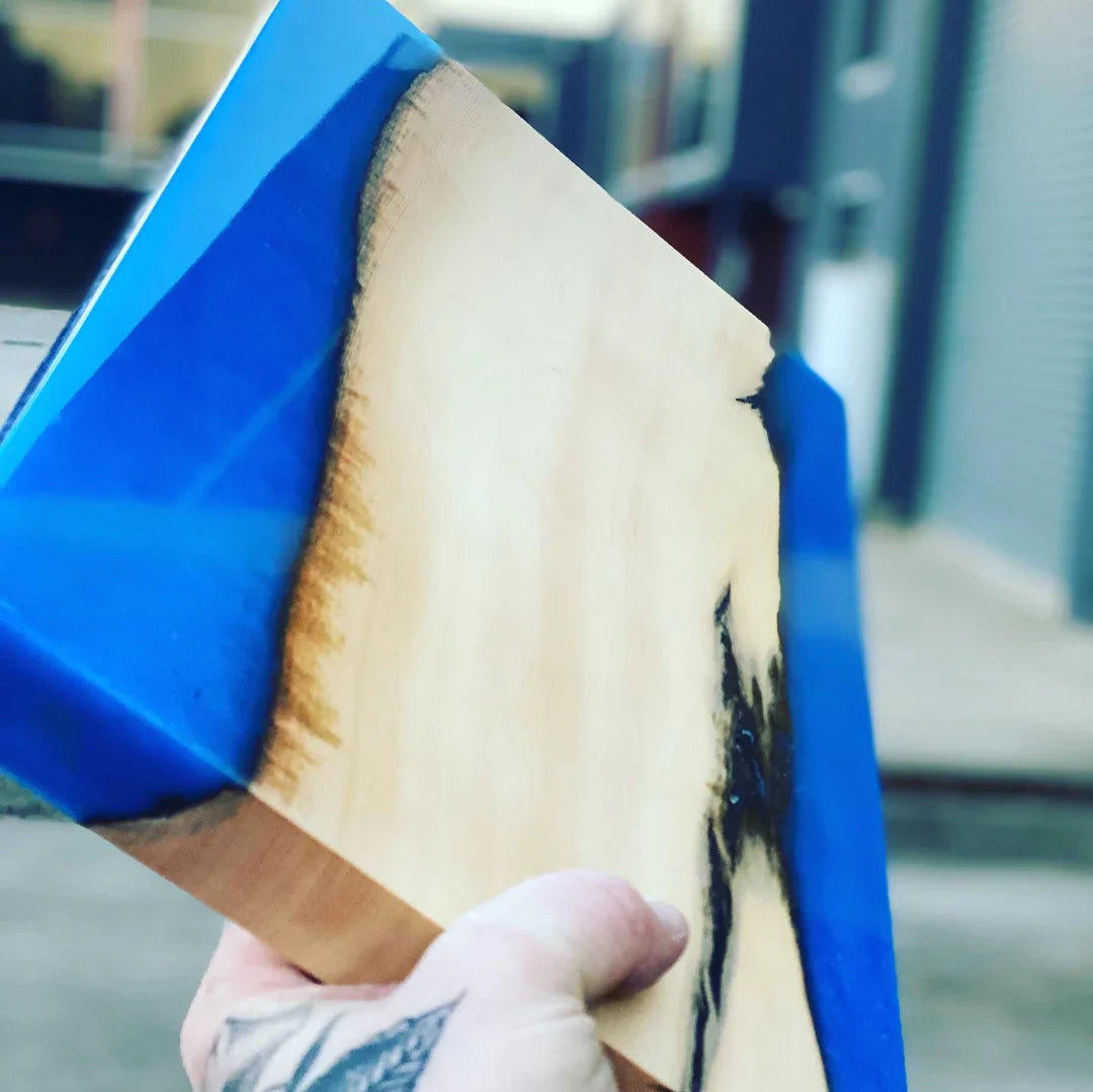 River Cast is a low exotherm resin system that has been designed specifically for thick clear pours. Once mixed and poured bubbles will begin to disperse on their own thanks to excellent bubble dispersion properties, however can be aided with heat (heat gun/butane torch etc).