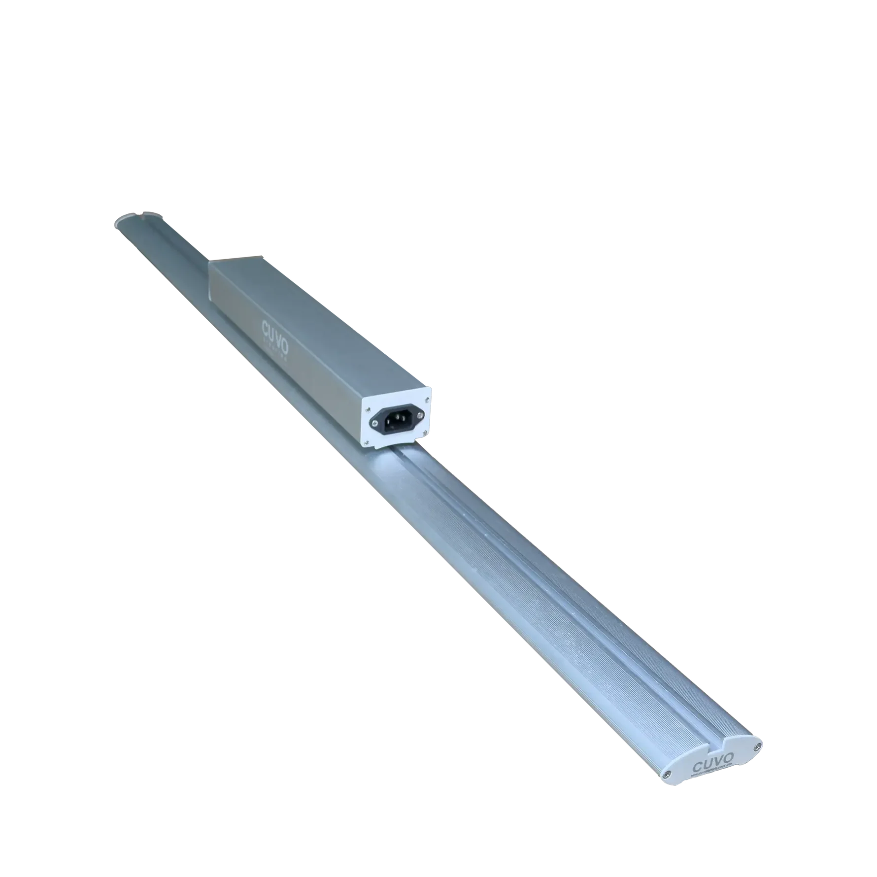 The Cuvo SlimUV Model 100 is a 1143 mm long, 100-watt bar-style UV curing light designed for large-scale or production applications. Built for stand or overhead mounting, it delivers adjustable output power and wide-area coverage for efficient, uniform curing of Clean Armor coatings. Perfect for commercial and industrial environments, the Model 100 ensures consistent performance across large surfaces with minimal waste heat.