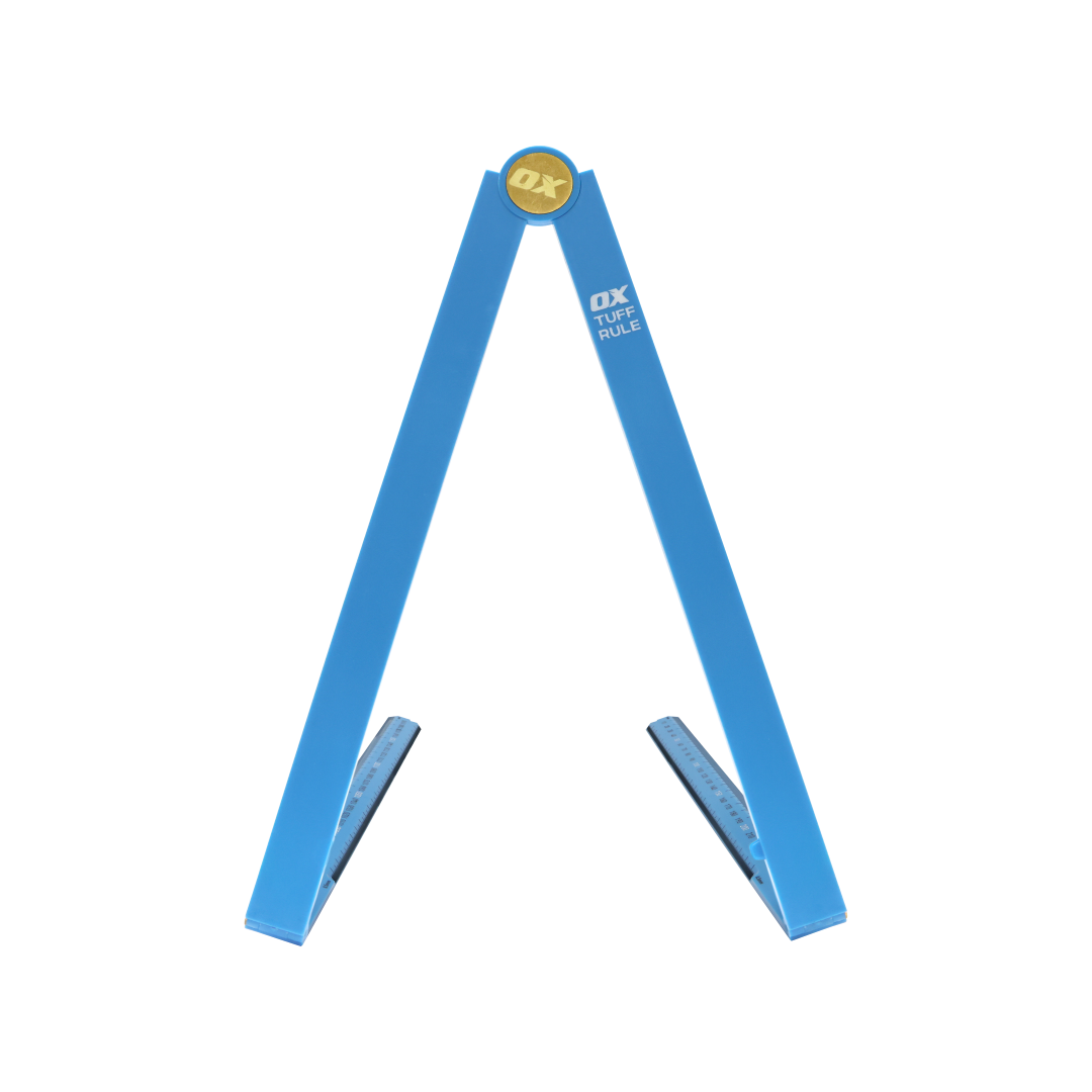 Constructed from impact-resistant ABS plastic, this rule features a reinforced brass hinge and pins for long-term durability, along with bevelled edges that improve handling and reduce marking error. The integrated centre-line feature simplifies splitting centres and marking offsets with confidence. A central swivel hinge allows for angle finding between 0°–180°, making this rule as versatile as it is tough.