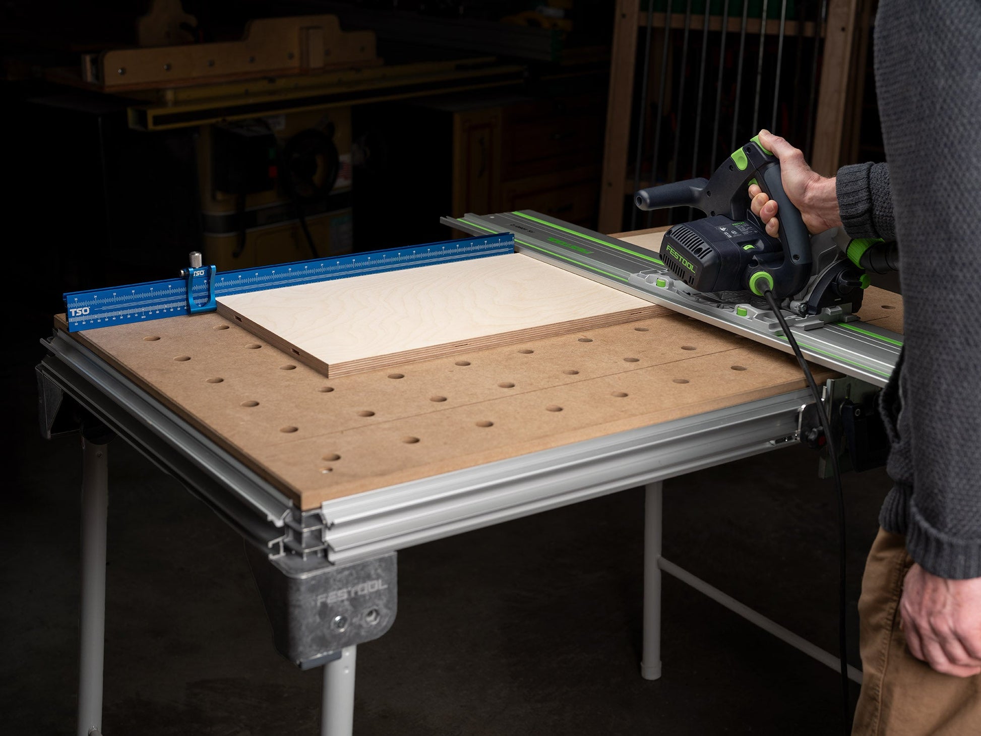 Whether you are building the ultimate track saw cutting station, itching for the ideal straightedge router or Domino guide, or just need a long and dependable work stop, the TSO Multifunction Fence adjusts seamlessly to your requirements and helps you get the most out of your multifunction table.