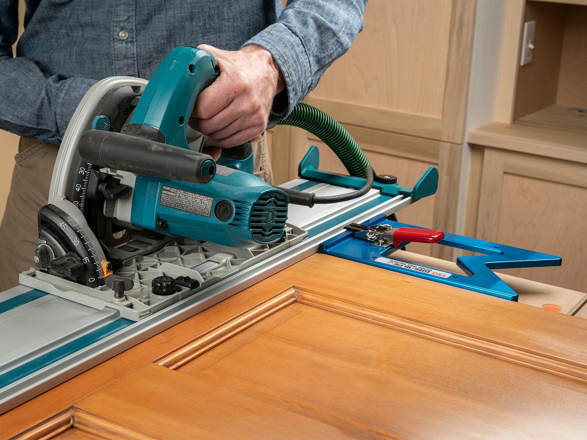 Breaking down sheet goods is easy with a TSO Guide Rail Square in your shop. This must-have track saw accessory turns your guide rail into a large, precision square, enabling fast and accurate 90-degree crosscuts with less setup time, less marking, and fewer errors.