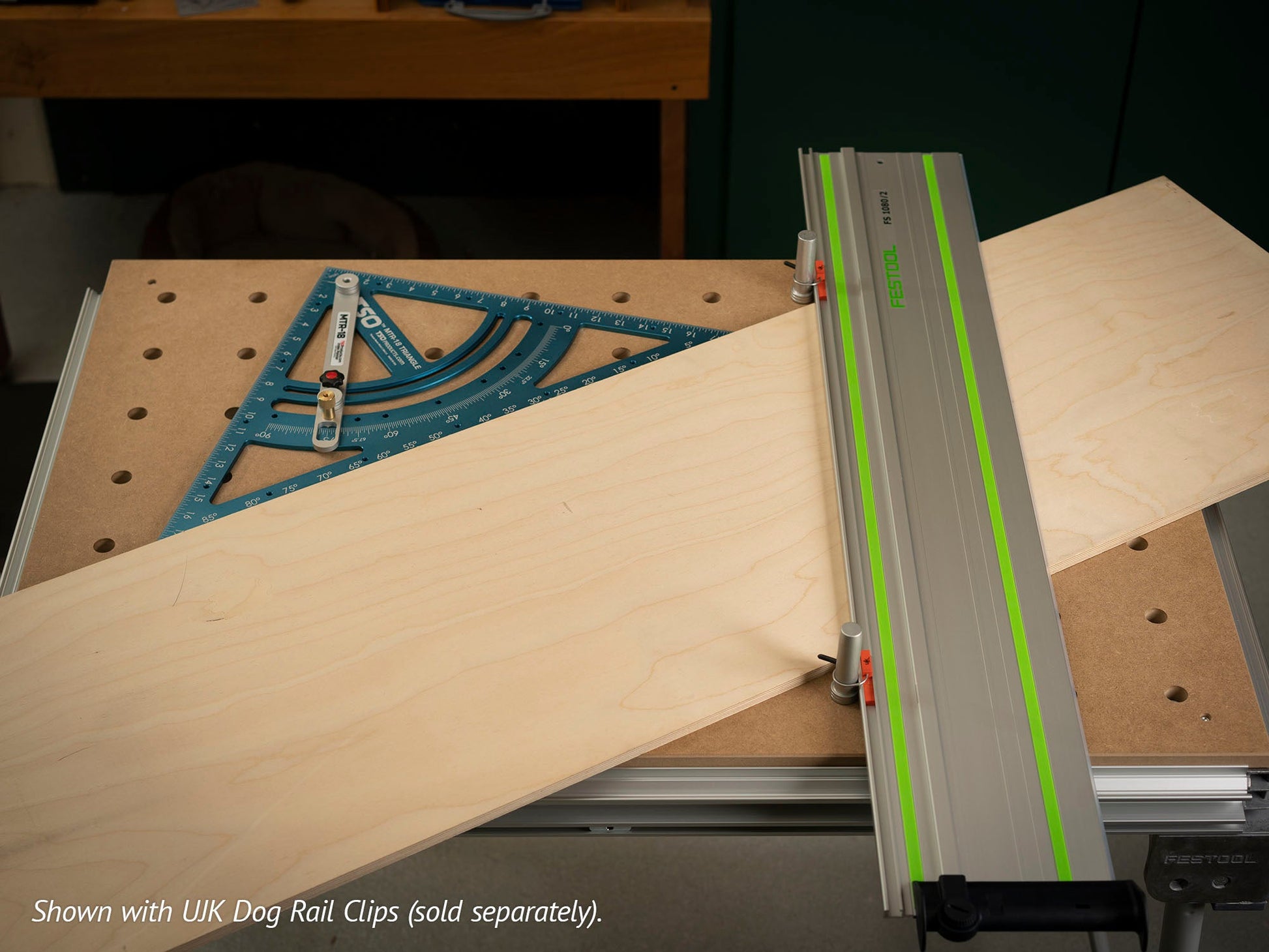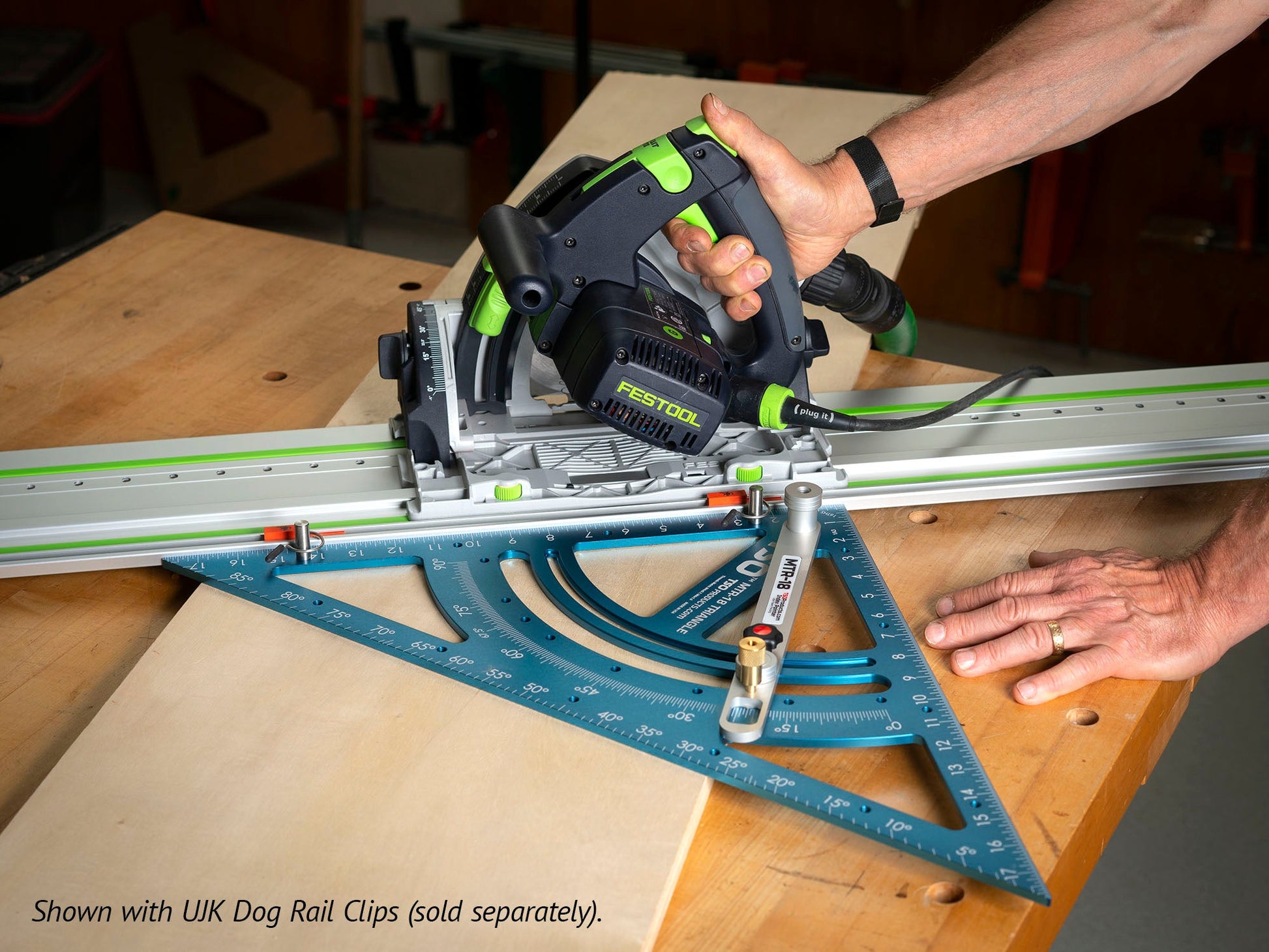 - Connecting Pins: Accurately square the Festool MFT/3 guide rail to the fence, even when the rail is elevated. Can also be used to connect the triangle to a guide rail using UJK Dog Rail Clips (not included). See image depiction.