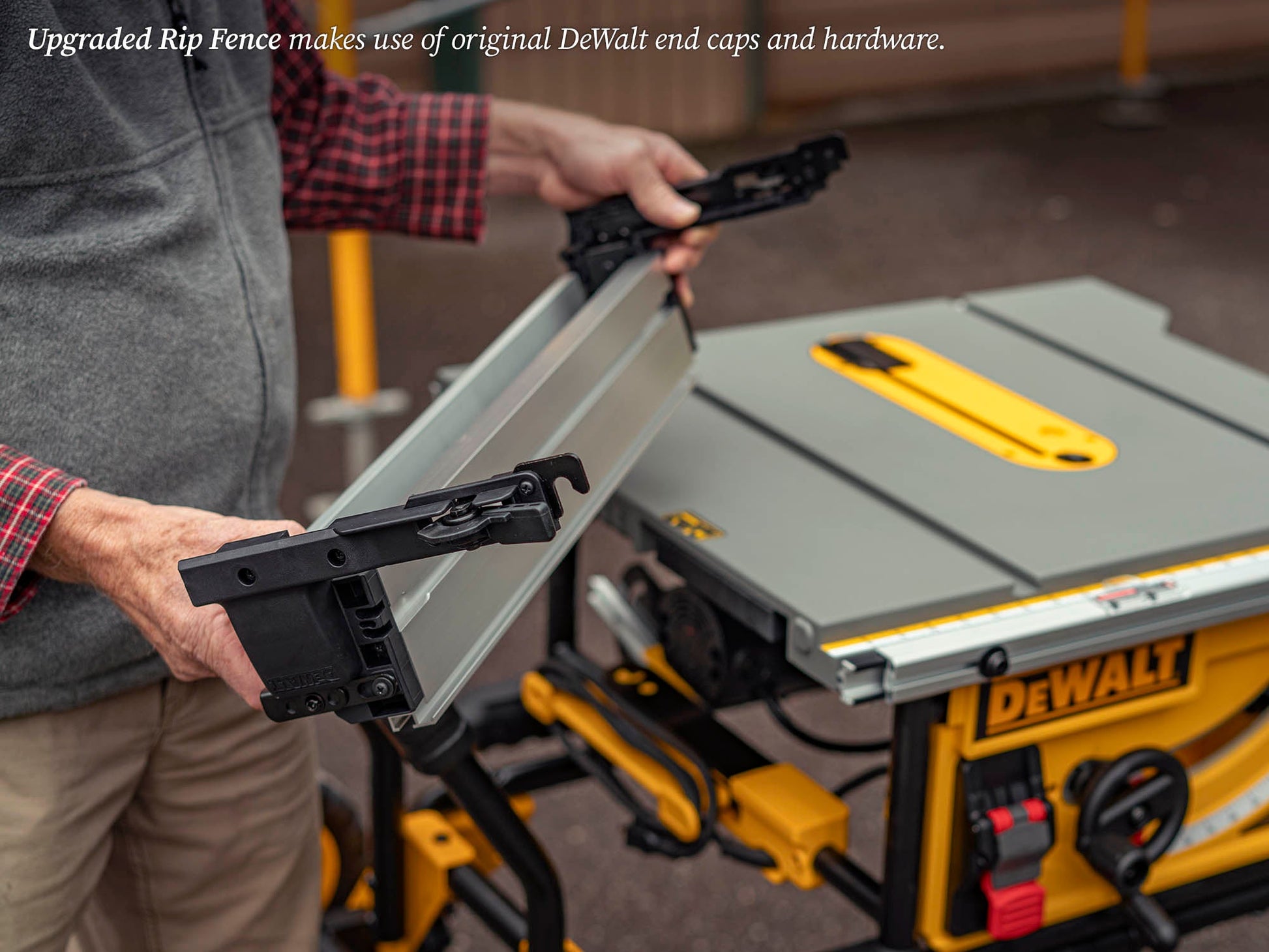 - Easy Installation: This upgraded fence reuses the existing DeWalt brackets and hardware and shares the same overall dimensions, so you’ll retain all the original features of your stock rip fence, such as the secondary flip-over fence for narrow and wide rips, built-in push-stick clips, and secure under-saw storage for transport.