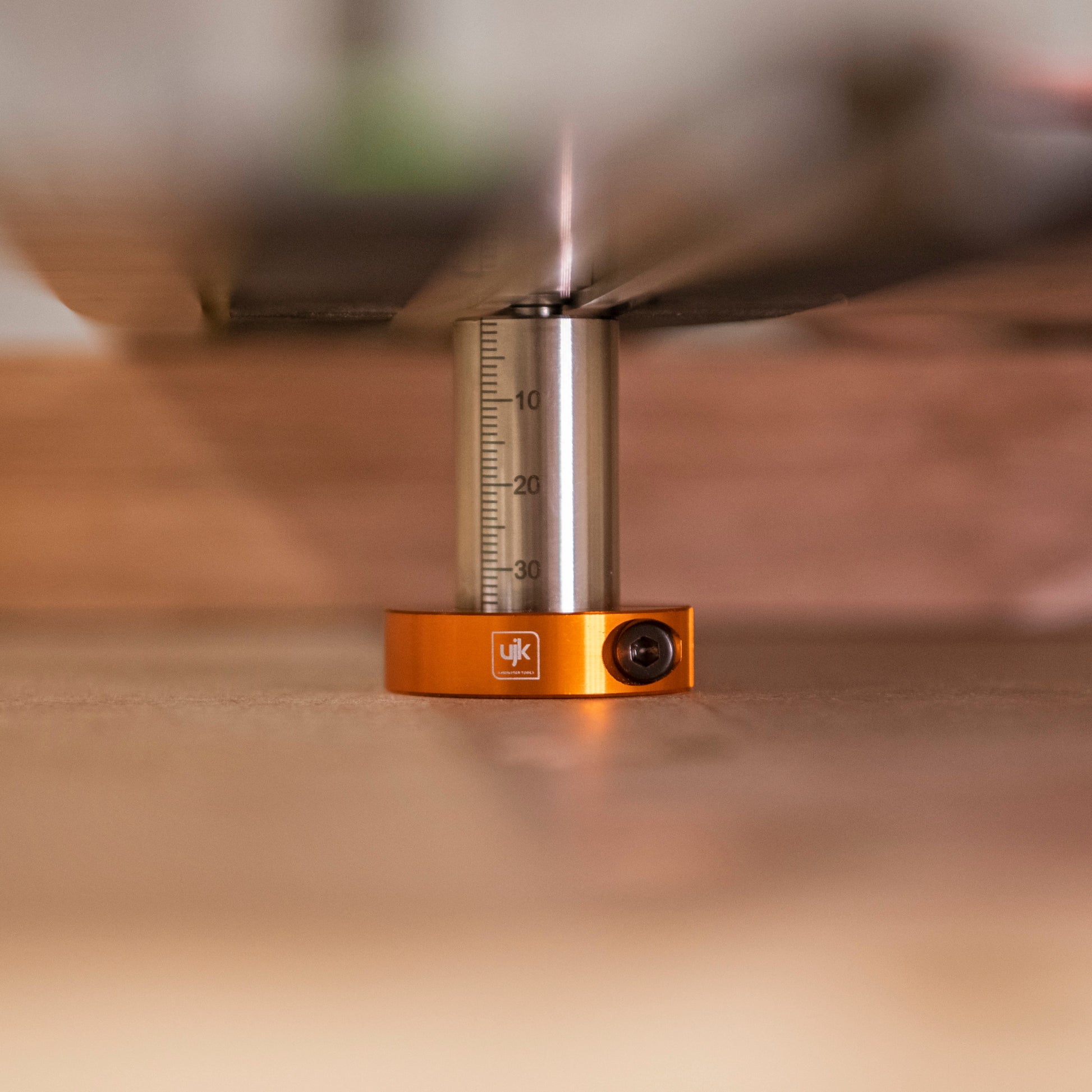 These unique stainless steel UJK dogs feature a Tee-bolt that fits into the Tee-slot on the underside of your Festool guide rail. Unlike the standard dogs that are referenced against the side of the rail, these dogs are hidden beneath your rail. They replace the need to rely on rail clips to keep the rail in position. Once located in the dog holes in your multifunction bench, your guide rail is going nowhere.