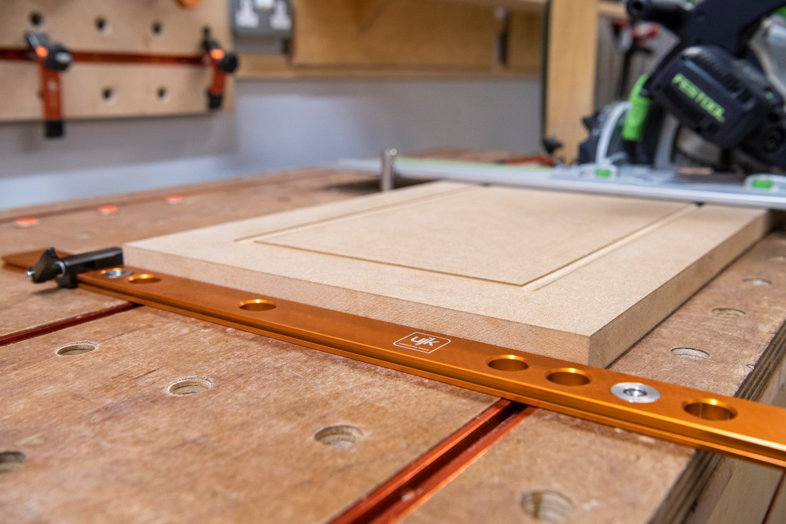 The Parf System fence is a precision piece of equipment, 600mm long, 10mm thick and 40mm wide. The fence is fully compatible with the UJK Parf Guide System, UJK multifunction worktops and MFT benches. The fence comes with 2 x 25mm long dogs, (the dogs feature an M8 tapped through hole giving them other uses), two stainless steel locking knobs and a strong and well designed adjustable stop, attached to the fence with a Bristol locking handle.